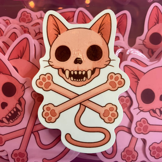 Kitty Cat Skull and Cross Bones Waterproof Sticker