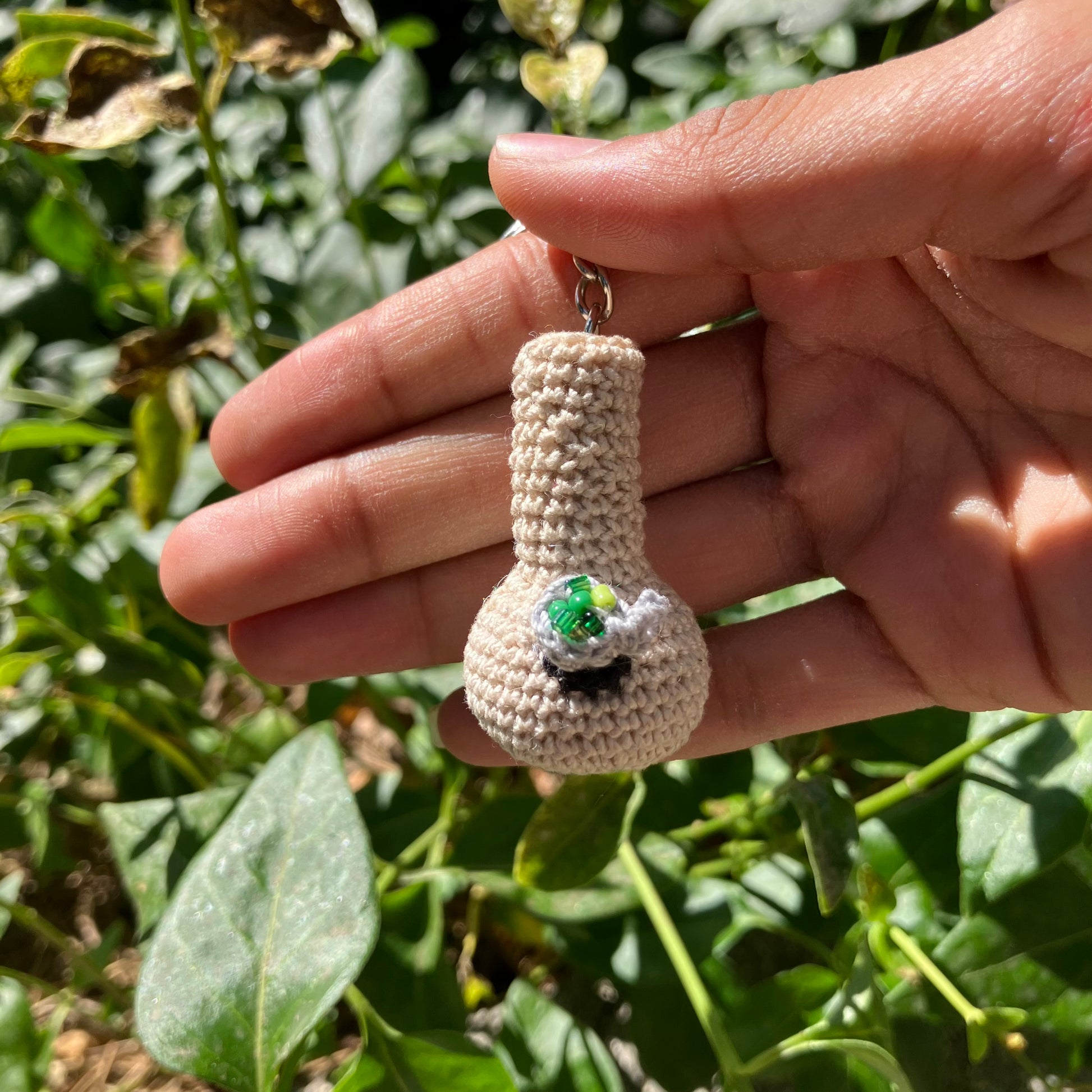 Take your love for cannabis on the go with our Mini Bong Keychains! Featuring intricate microcrochet details, these keychains are perfect for any cannabis enthusiast looking for a quirky and fun accessory.